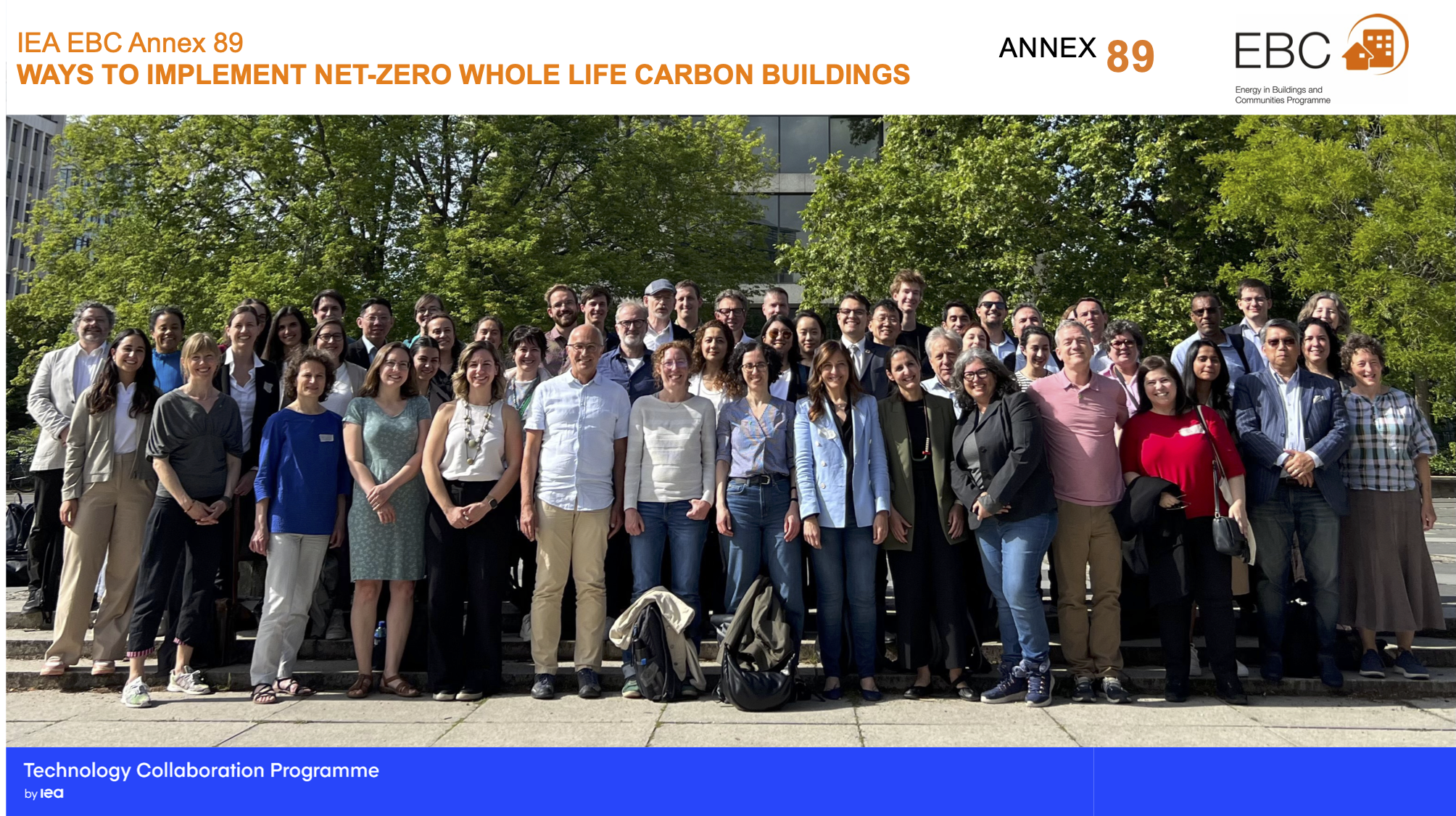 The IEA EBC Annex 89 Expert Meeting, held on June 20th and 21st, 2024, in Berlin, Germany, convened leading experts in the building sector to advance discussions on implementing net-zero whole life carbon (NetZ-WLC) buildings. Organized by Thomas Lützkendorf, Rebekka Volk, and Theresa Kaya at the Architecture Faculty of TU Berlin, the meeting addressed the latest developments in the project's Substasks: Planetary boundaries and decarbonization pathways (ST1); Paris-goal compatible assessment methods (ST2); Enabling tools and instruments (ST3); and In-practice uptake of NetZ-WLC initiatives. Through presentations, discussions, and collaborative sessions, the event achieved its aim of integrating current research and practical approaches to enhance building decarbonization efforts and align with the Paris Agreement's climate goals.